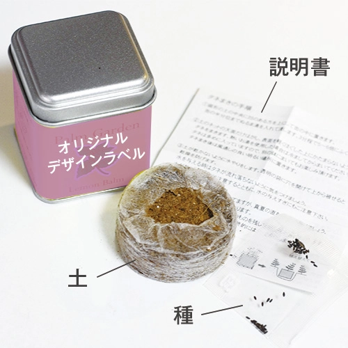 缶入り栽培キット(角缶)は手のひらサイズの角缶で育てる栽培キットです。
