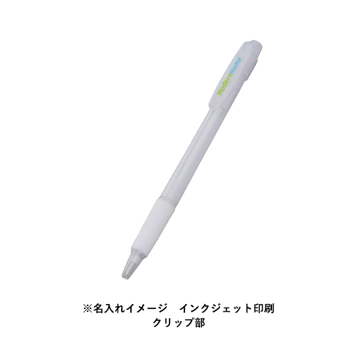 グリップ部分やノック部分を本体色に合わせた仕様で、 全体に色の統一感があり名入れを目立たせることができます。 また、素材には本来焼却廃棄予定だったABSを使用し、不要になったABSを再利用することで 廃棄する際に排出される二酸化炭素を削減できるため、環境にも配慮したサスティナブルな商品です。 ボディ部分とクリップ部分にシルク単色印刷、またはインクジェットでフルカラー印刷にも対応可能なため、 企業やブランドロゴ、学校名などを使用した配り物ノベルティにも最適です。