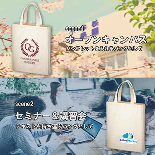 5オンスのバッグシリーズに縦型のスクエアトートが登場しました。約50mmのマチがついており、A4サイズが入るので展示会でのカタログ配布用のバッグとして人気のあるデザインです。通勤・通学時のサブバッグとしても使い勝手の良いサイズ感となっております。カラーはナチュラルとブラックの2色からお選びいただけます。パンフレットなどの資料を配布するオープンキャンバスやセミナーのノベルティとしておすすめです。