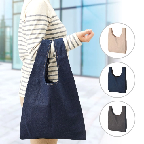 アップサイクル(再生素材)を使用したデニムのような素材、「デニムライクシリーズ」のトートバッグです。 人気のシャンブリックシリーズでも使用している再生糸を、デニムのように綾織(斜め織り)にし、デニム生地のような風合いになります。 お買い物バッグとして使いやすい人気のマルシェ型です。 デニムの定番カラーのインディゴに加え、ブラックとベージュ(チノカラー)が新登場して3色展開となっております。 ちょっとしたお出かけに最適なデニム生地のトートバッグで、アパレル利用やアーティスト物販、個人利用など幅広くご利用いただけます。