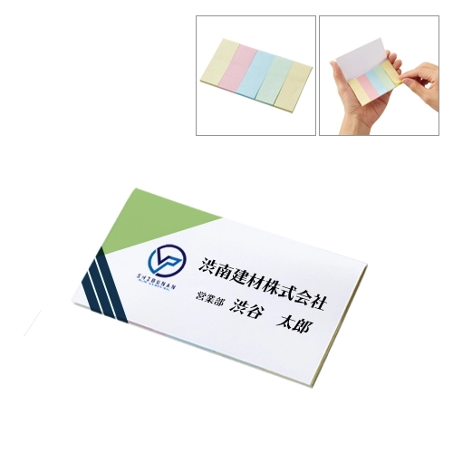 手帳や名刺ケースに入るよう、付箋の枚数は少なめにしています。営業ツールとしてはもちろん、店舗オープン記念のノベルティにもおすすめのアイテムです。