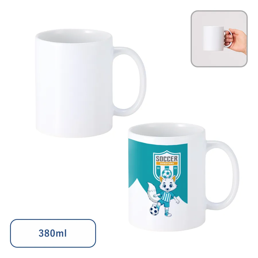 シンプルで真っ白なボディは名入れがよく映えるため、オリジナルグッズ製作向けに人気の商品です。